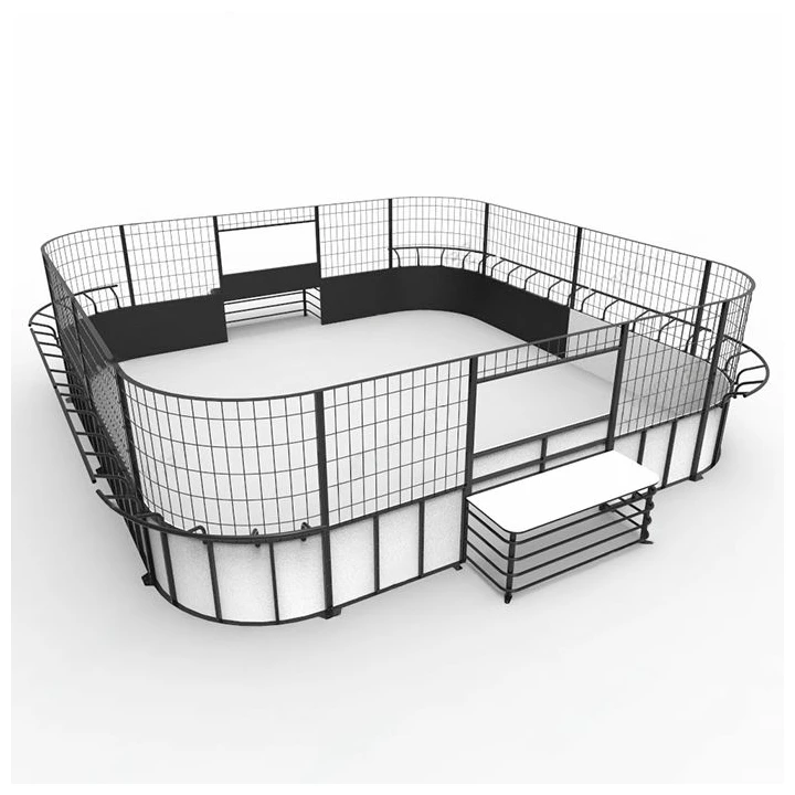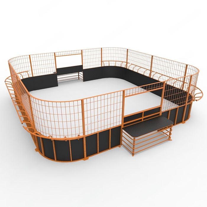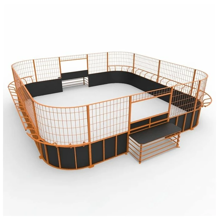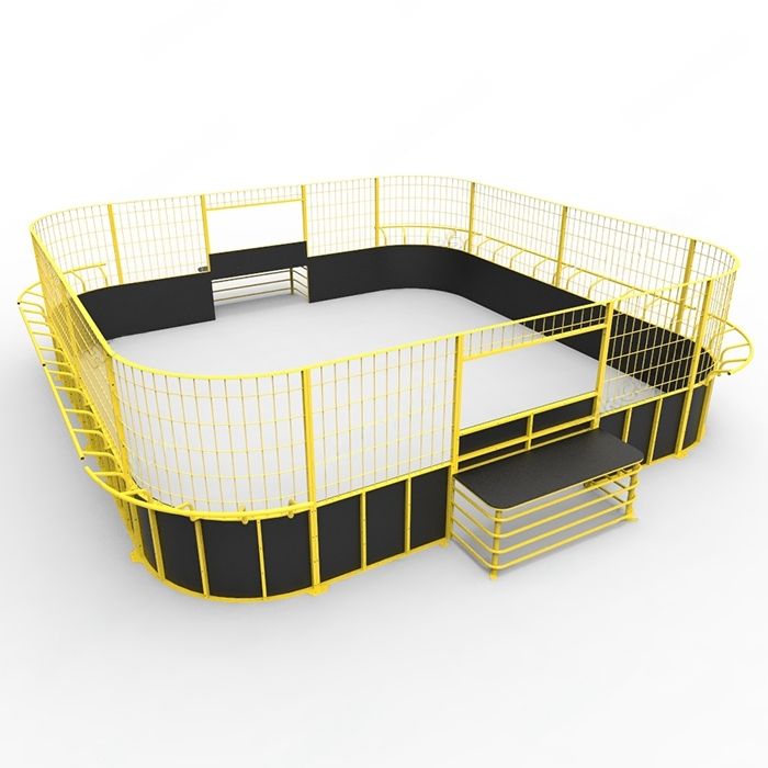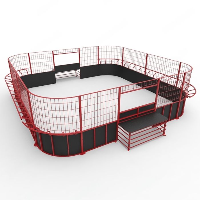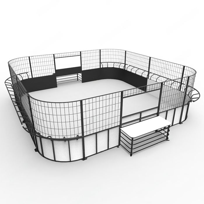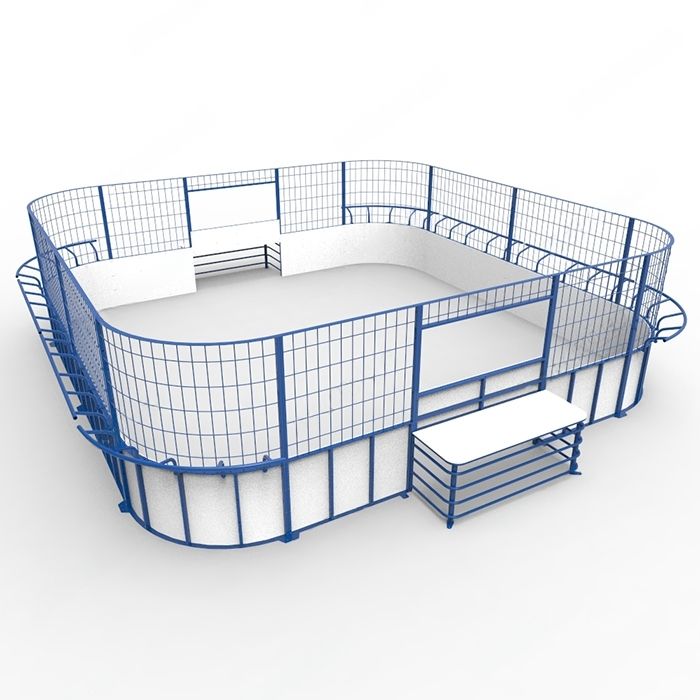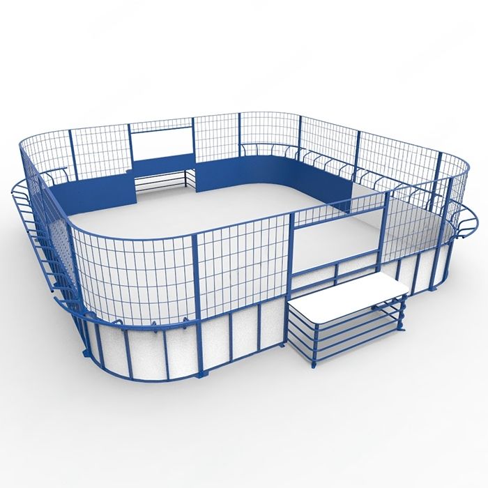 Панна площадка, высота ограждения 1,8 м. Борта из листовой стали (нижний уровень), стальная сетка (верхний)