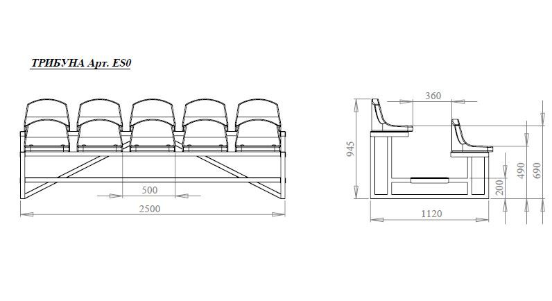 ES0 Быстровозводимая спортивная трибуна 2-х рядная без ограждений