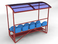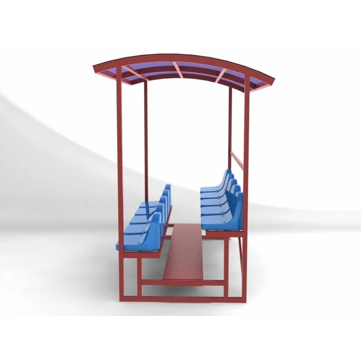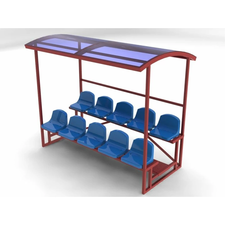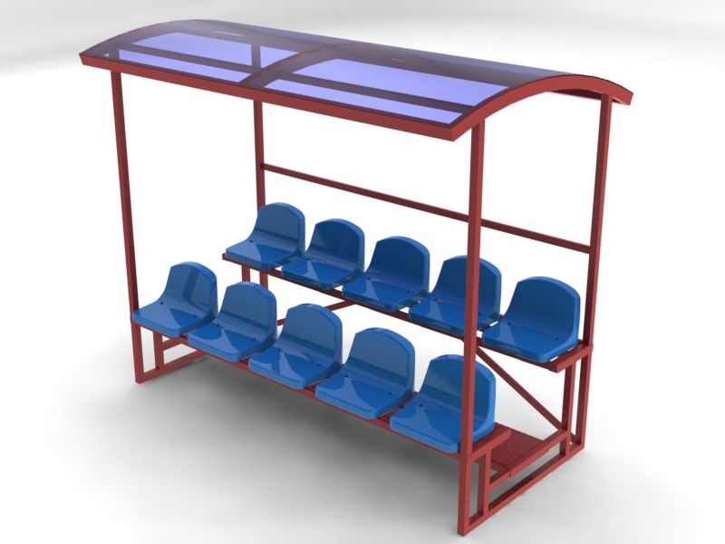 Запросить КП ES1 Быстровозводимая спортивная трибуна 2-х рядная с крышей и ограждением сзади