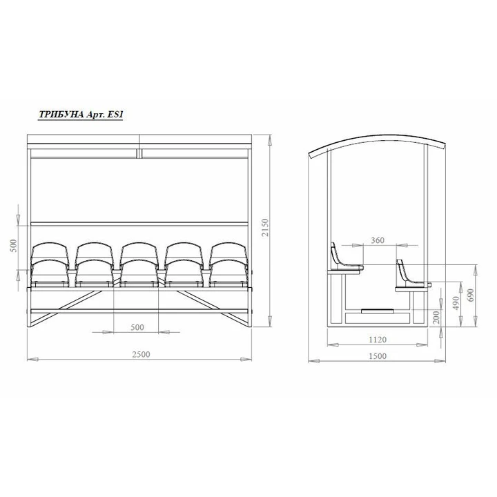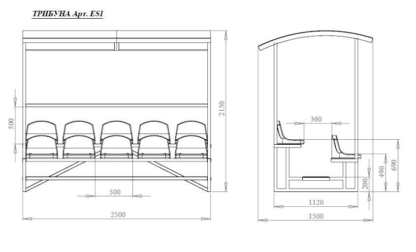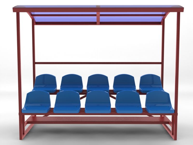 ES1 Быстровозводимая спортивная трибуна 2-х рядная с крышей и ограждением сзади