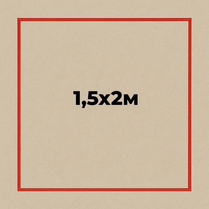 Гимнастический ковер имеет размеры1,5х2 м. Он поставляется в виде дорожки шириной 1,5 м и длиной 2 м. Подложка изготовлена из толстого войлока, износоустойчивый ворс имеет высоту 8 мм. Плотность ворса составляет 950 г/м², а разметка рабочей зоны выполнена с помощью красной ленты в виде квадрата.