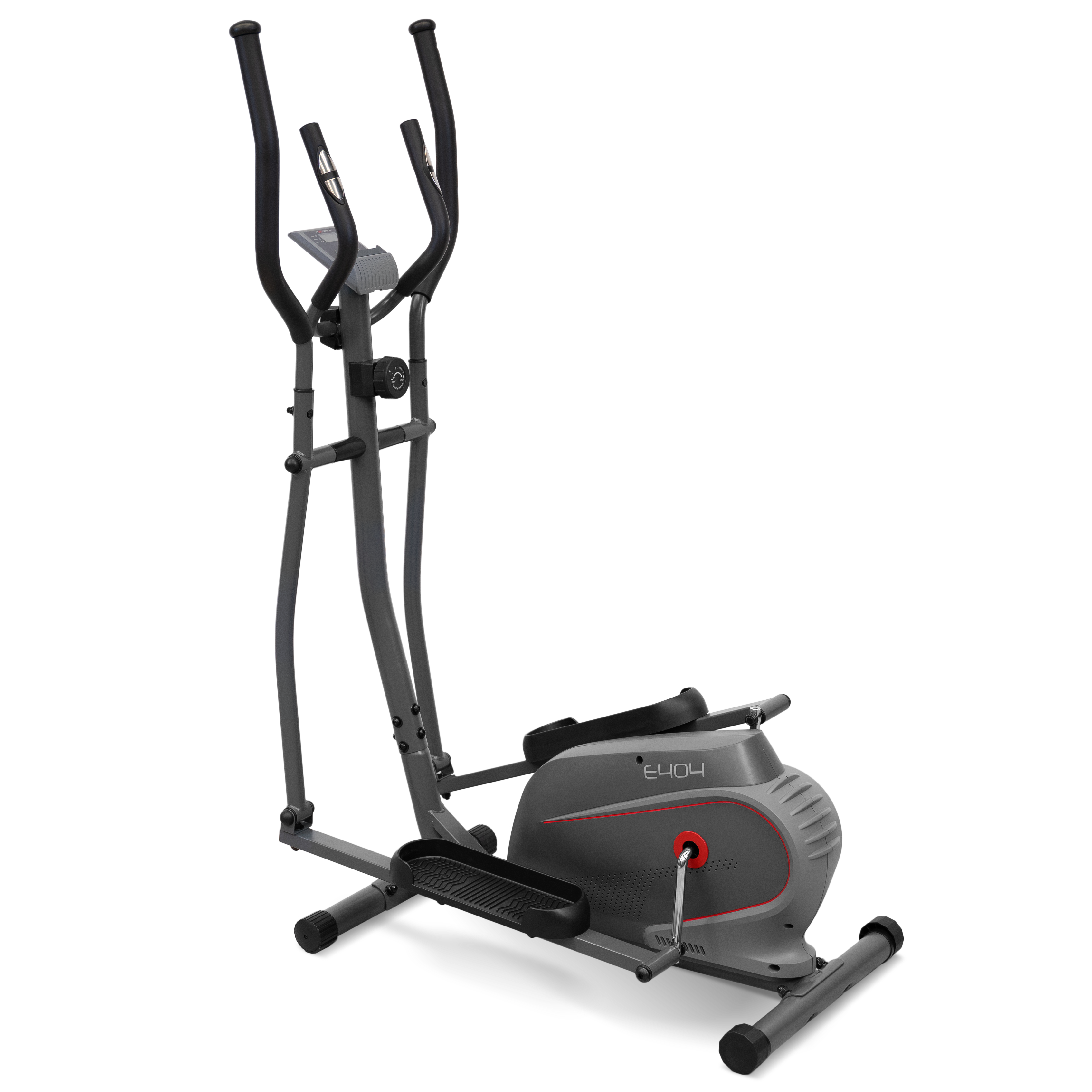 Carbon E404 с магнитной системой нагружения относится к классу среднеразмерных эллиптических тренажеров для домашнего применения. Рамная конструкция из усиленного профиля выдерживает вес пользователя до 110 кг. Система нагружения построена на базе классического заднего привода. Магнитная система нагружения обеспечивает биомеханически правильное педалирование и корректное распределение нагрузки по всей траектории движения. Качество кручения также обеспечивается мощным сбалансированным маховиком с собственным весом 3 кг. Длина шага составляет 33 см. Расстояние между педалями (так называемый "малый Q-Фактор S.Q.F.™") составляет 21 см. Чем меньше такое значение, тем больше тренировка на тренажере приближена к естественным движениям во время бега. Тренировочный компьютер представлен LCD-дисплеем с монохромной матрицей. На экран выводятся все основные параметры тренировки - время, скорость, дистанция, расход калорий, пульс, одометр. Также есть 4 встроенные программы, направленные на целевые тренировки по времени, дистанции, расходу калорий и пульсу. Нагрузка регулируется механическим путем в 8 положениях. К числу дополнительных характеристик эллипсоида относятся такие опции как транспортировочные ролики и компенсаторы неровностей пола. Таким образом, переместить изделие из одного места в другое не составит большого труда даже для хрупкой девушки, а компенсаторы позволят отрегулировать положение ножек на неровной поверхности. Из приятного бонуса - наличие подставки под смартфон для разнообразия тренировки.