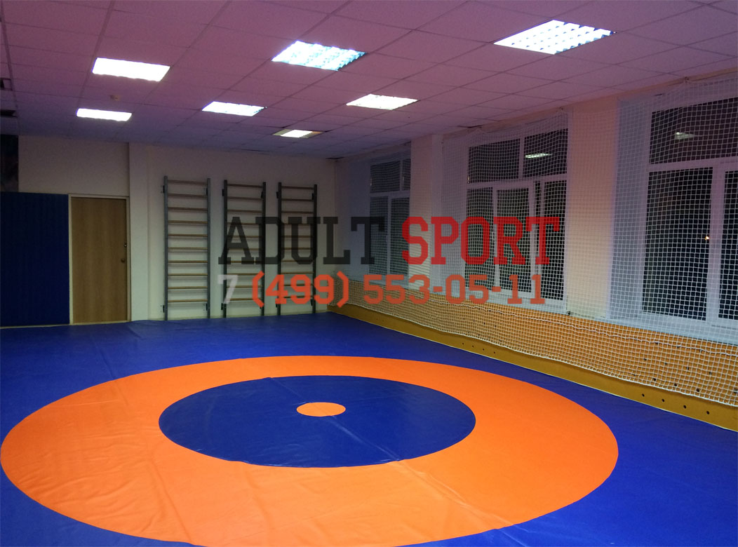 Нами осуществлены следующие работы: изготовлен и смонтирован борцовский ковёр в тренировочном зале, изготовлены и смонтированы стеновые протекторы, шведские стенки.